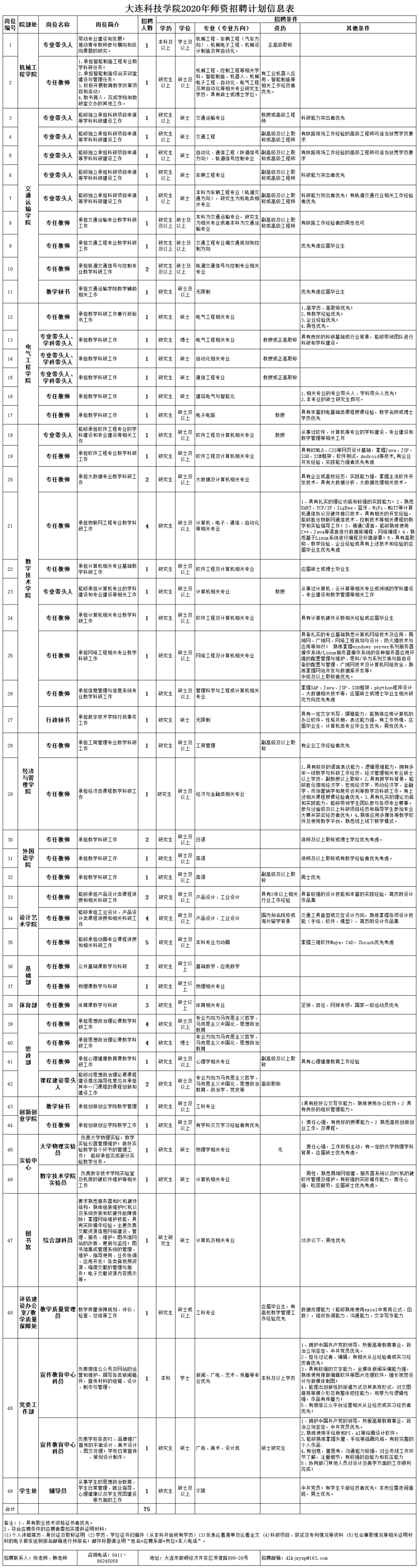 附表:大连科技学院2020年师资招聘计划信息表.xls(见文中最下方)