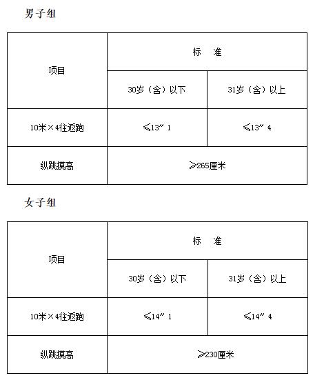 参照《关于印发公安机关录用人民警察体能测试项目和标准(暂行)的通知》执行,参加测试人员必须穿运动鞋、运动服,患有心脑血管、高血压疾病、妊娠期及其他不宜参加体能测试人员禁止参加测试,体测通过后参加笔试。