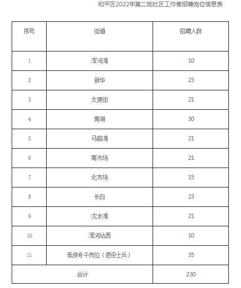 (十一)具体岗位和人数详见《和平区2022年第二批社区工作者招聘岗位信息表》;