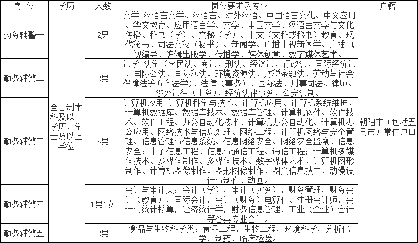 2022年朝阳市公安局招考警务辅助人员51人公告