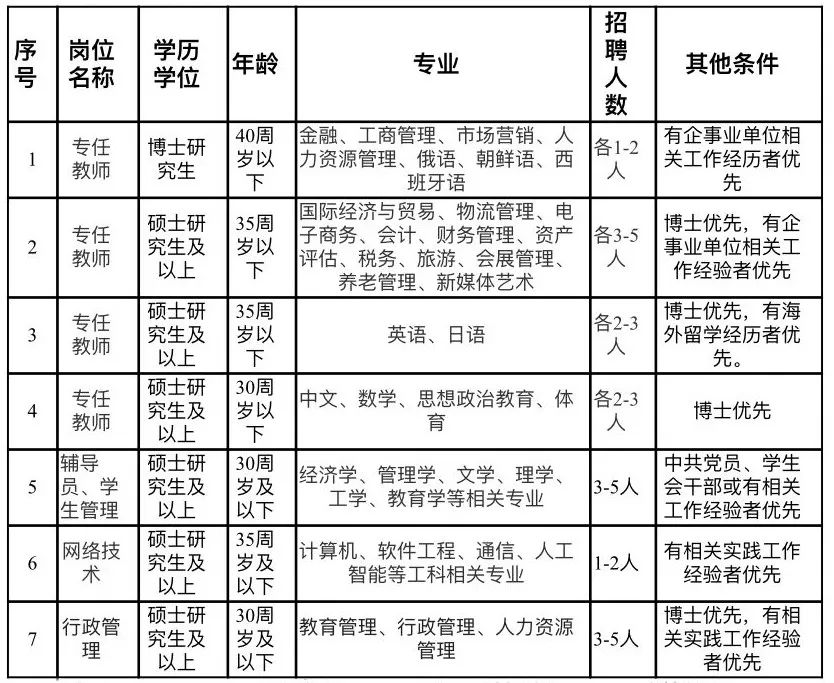 应聘专任教师岗位人员,副高级职称年龄不超过40周岁,正高级职称年龄不超过45周岁;硕士研究生要求本硕专业一致。