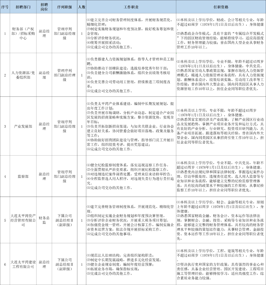 目前,太平湾合作创新区已进入全面开发阶段,亟需懂管理、善经营、拥有丰富经验的高层次人才,列为由公司党委直接管理的高级管理人员,现向社会公开招聘。