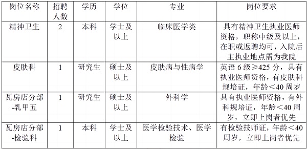 4. 考核:考核工作分为笔试、技能及面试。考核时间、地点等信息,我院将电话另行通知。